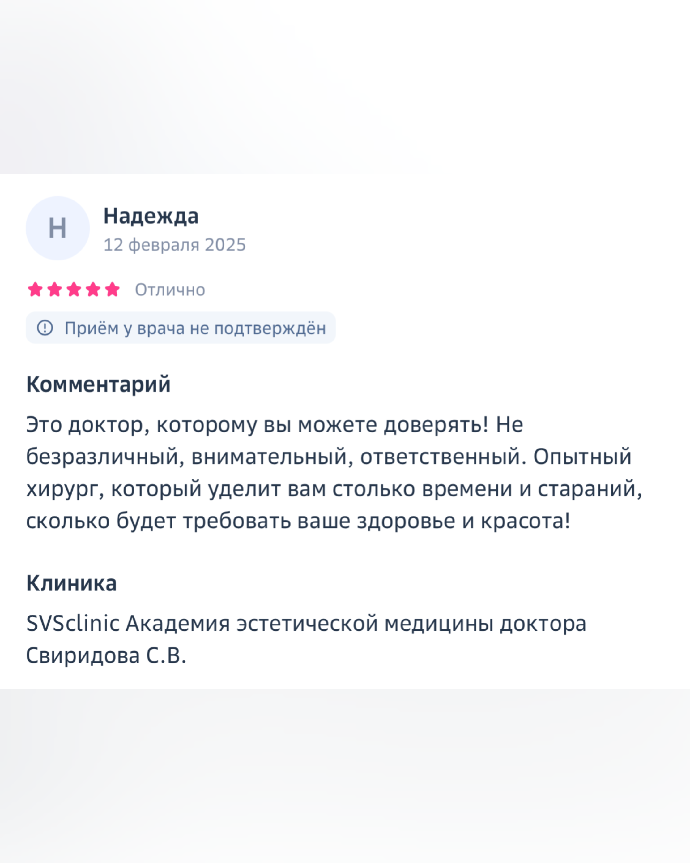 «Это доктор, которому вы можете доверять! Не безразличный, внимательный, ответственный. Опытный хирург, который уделит вам столько времени и стараний, сколько будет требовать ваше здоровье и красота!»