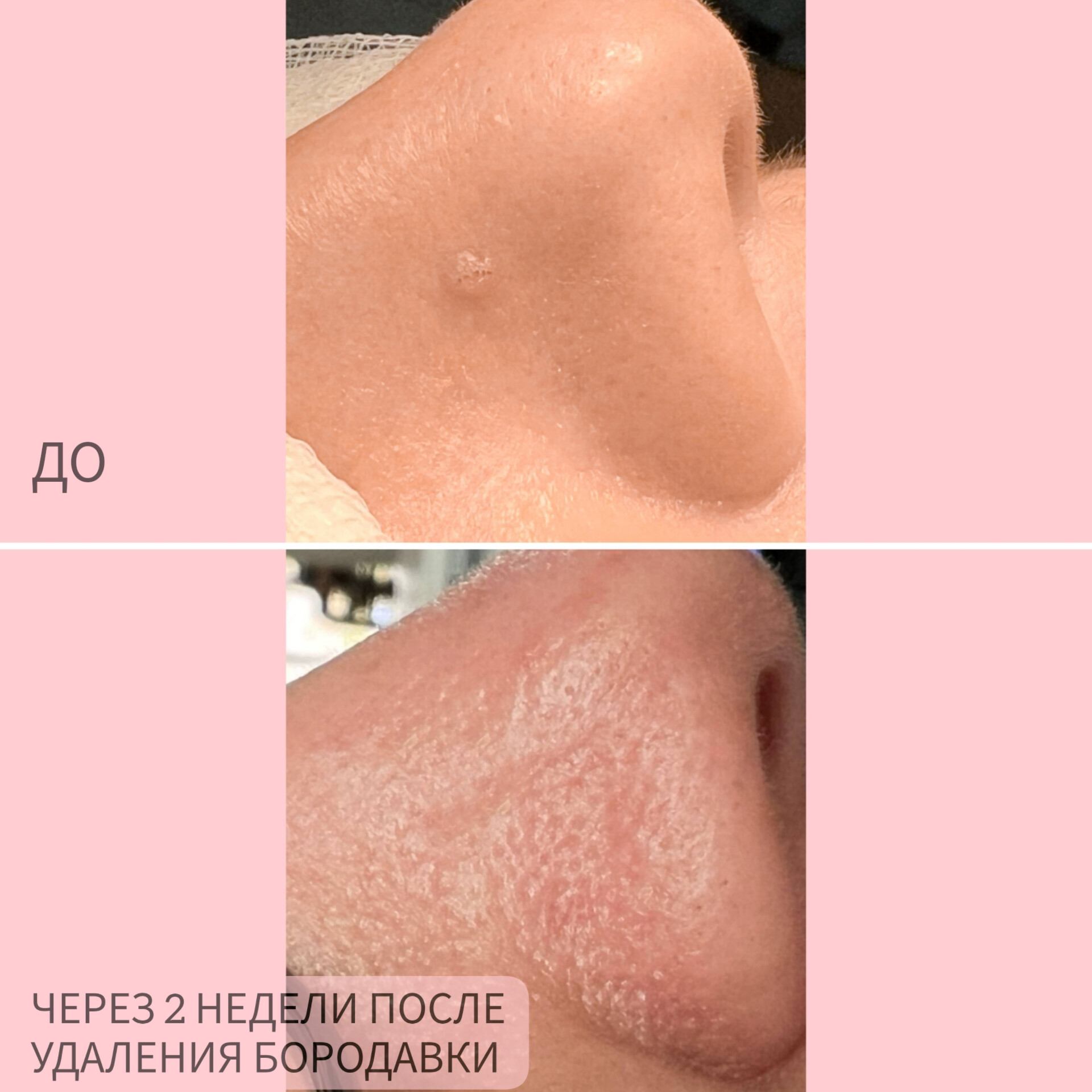 >>Выполнил удаление бородавки в области носа с использованием СО2 лазера.