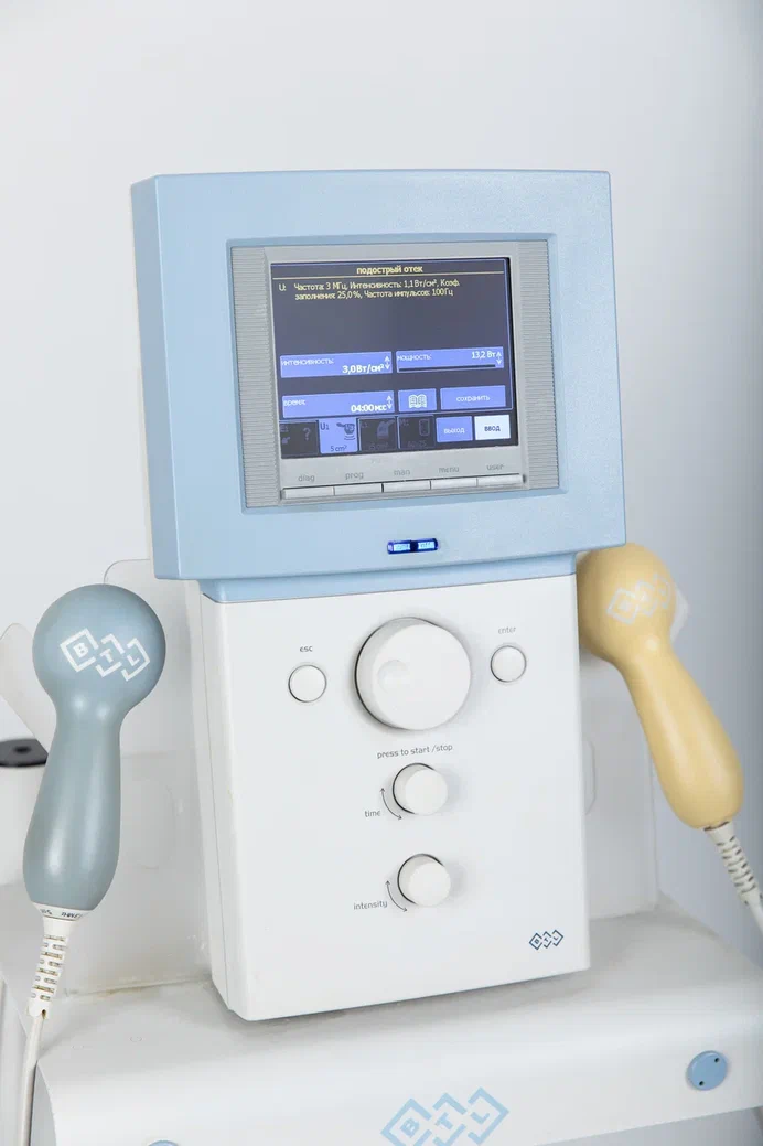 Действие: электротерапия с дополнительными токами, ультразвук, лазерная терапия, магнитная терапия.