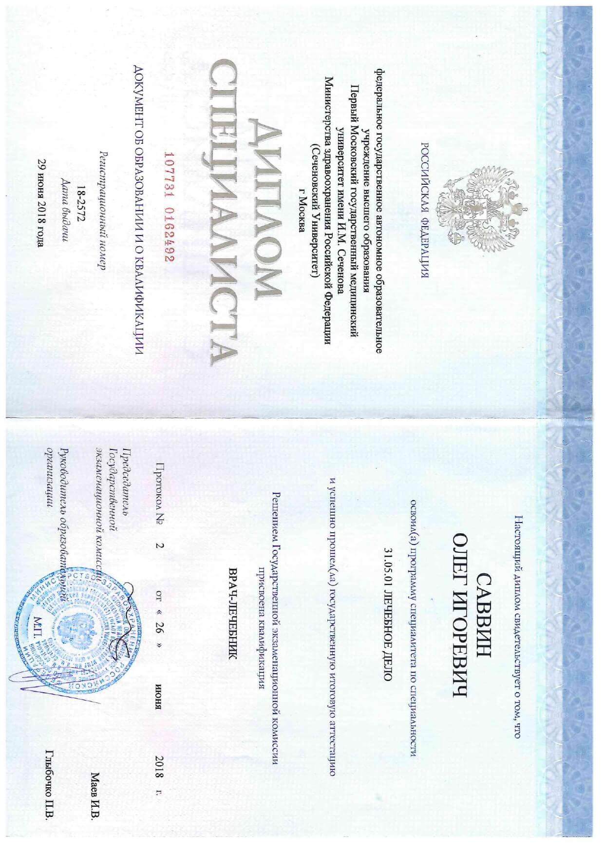 Саввин Олег Игоревич квалифицированный реконструктивный пластический хирург, за плечами которого 7 лет клинической практики. Окончил университет первый МГМУ им. И. М. Сеченова (Сеченовский Университет) и ординатура по пластической хирургии Российского университет дружбы народов.