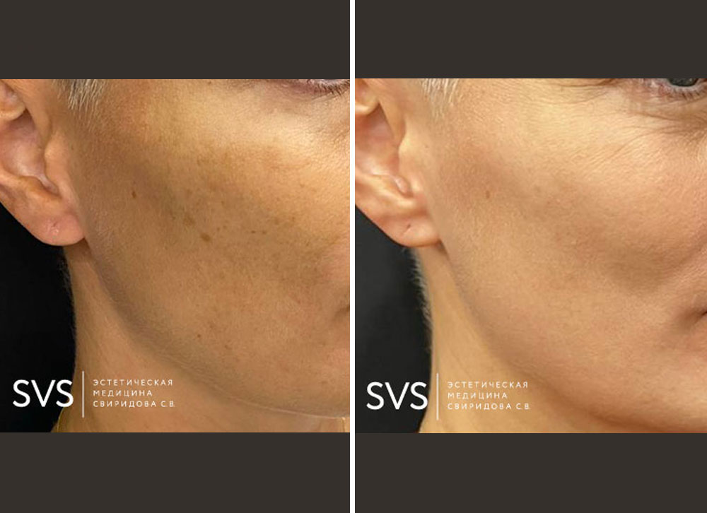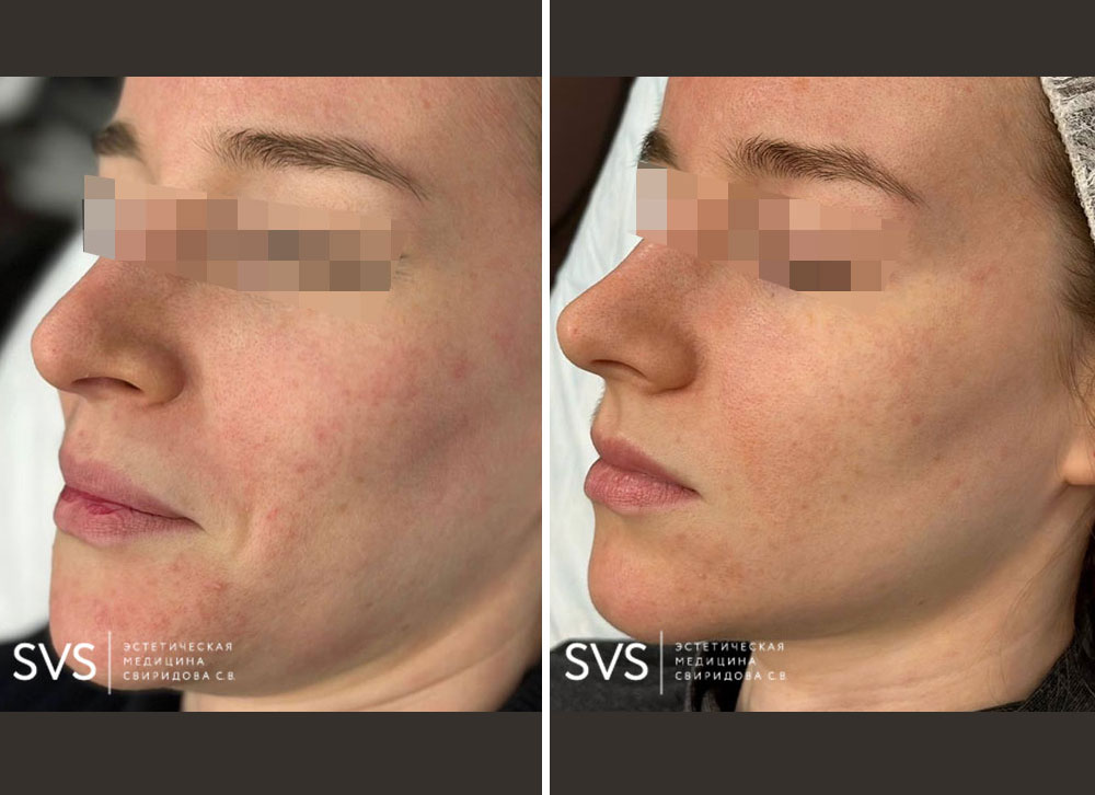 Уже после первой процедуры кожа становится гладкой, мягкой и ровной. Через 7-10 дней уменьшаются пигментные и сосудистые нарушения, поэтому уменьшается краснота, тон кожи выравнивается и приобретает фарфоровое сияние, кожа выглядит здоровой!
