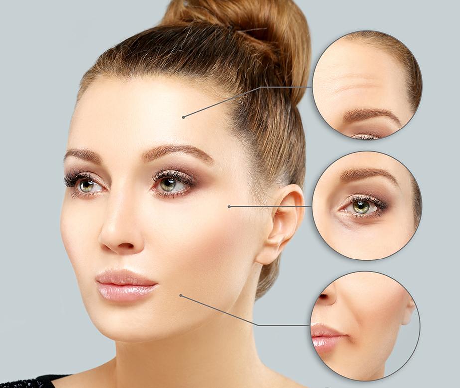 ботулинотерапия — эффективно разглаживает морщины лба, межбровья, зоны вокруг глаз и губ, снимает избыточное напряжение мышц, предотвращает формирование новых заломов, помогает скорректировать десневую улыбку и улучшить овал лица