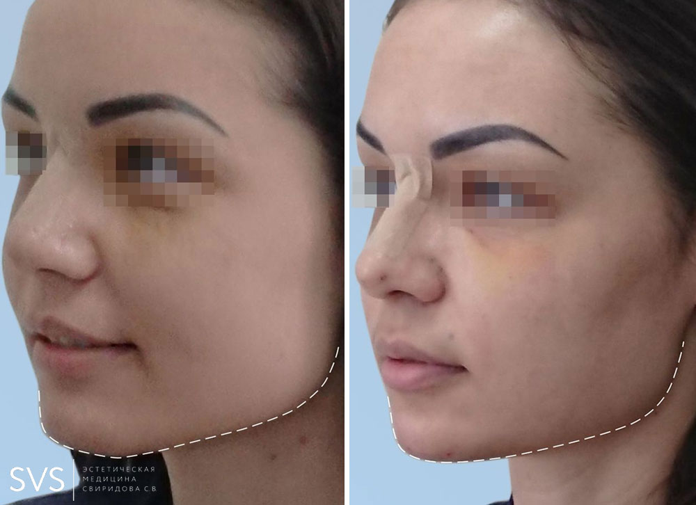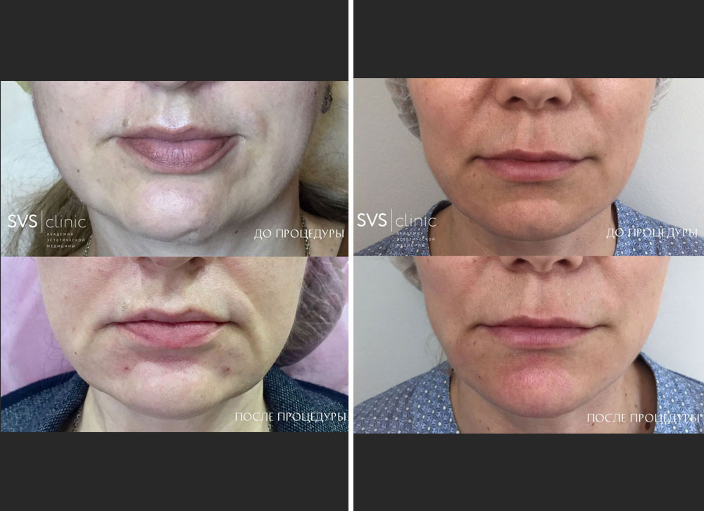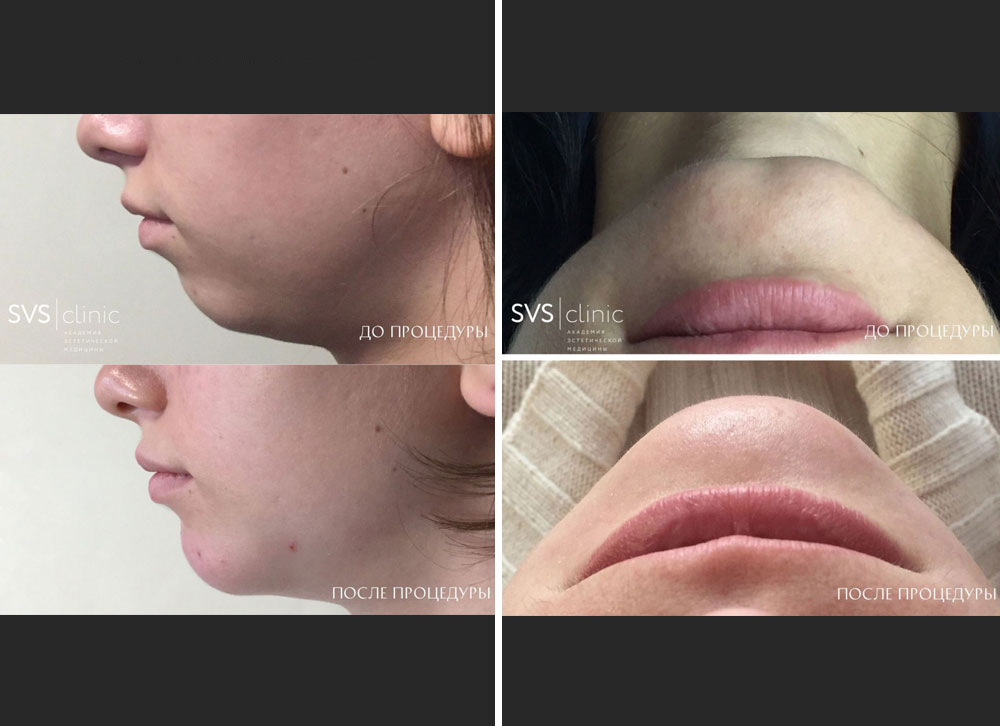 После введения плотного филлера контуры подбородка и нижней трети лица видоизменяются. Дополнением этой процедуры является то, что, кожа в этой области приобретает более гладкий и здоровый вид.