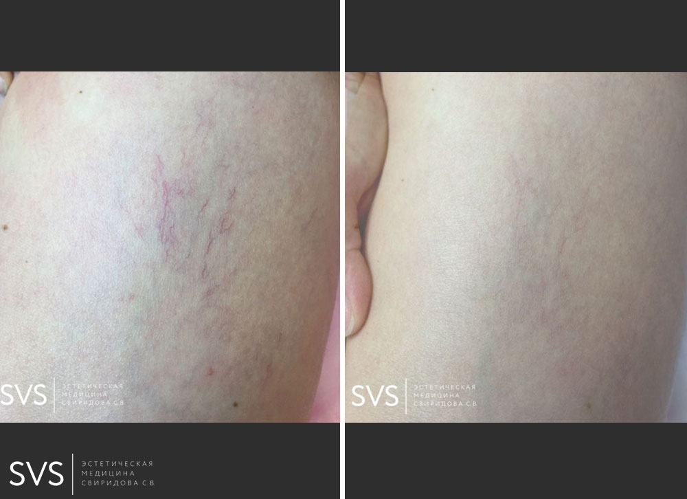 Лечение проводится как на лице, так и на теле. Уже через 2–3 дня после процедуры кожа становится ровнее, а сосудистый рисунок — менее заметным или исчезает полностью.