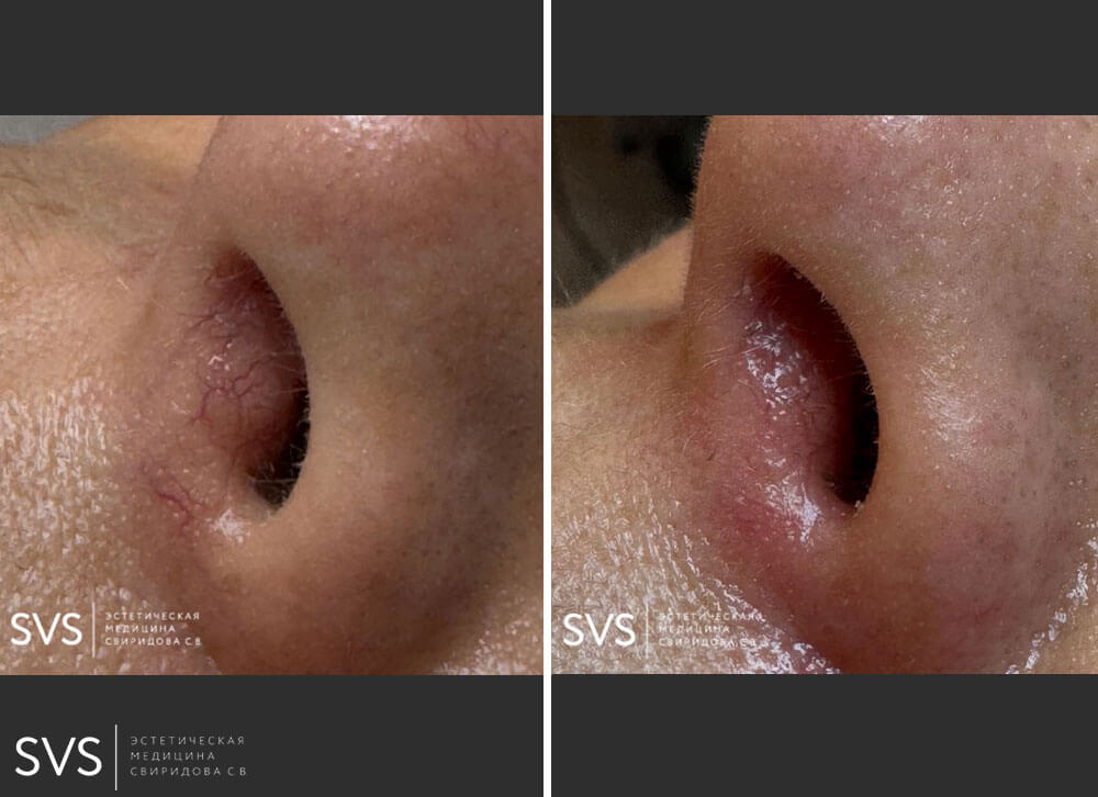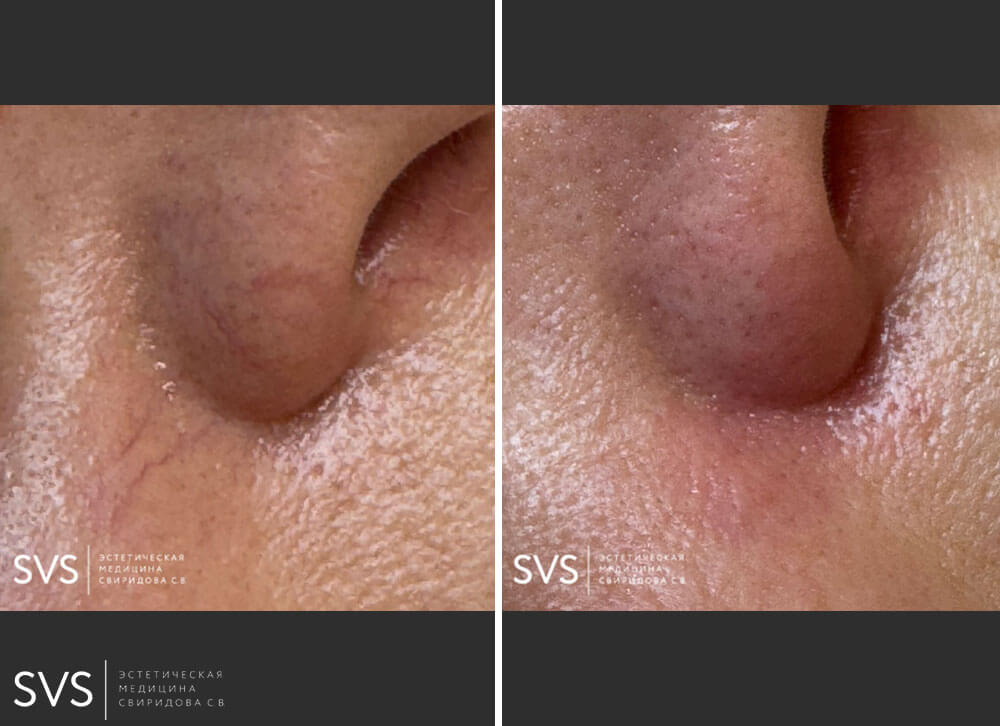 В некоторых случаях сосуд исчезает сразу. Но чаще всего эффект развивается в течение 3–5 дней, а кожа постепенно светлеет и выравнивается.