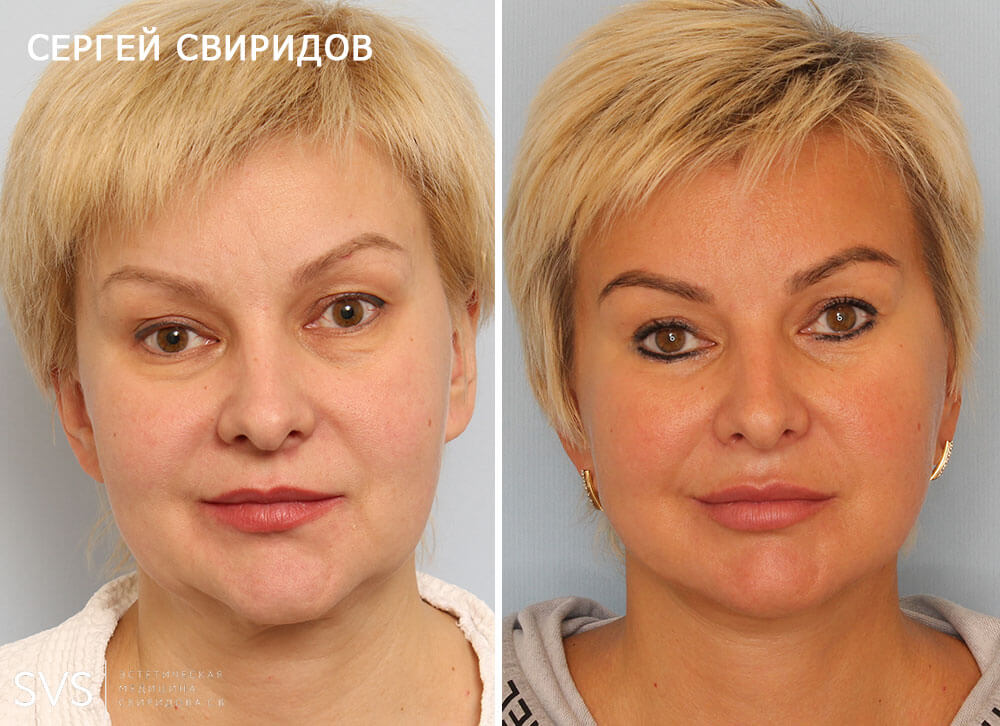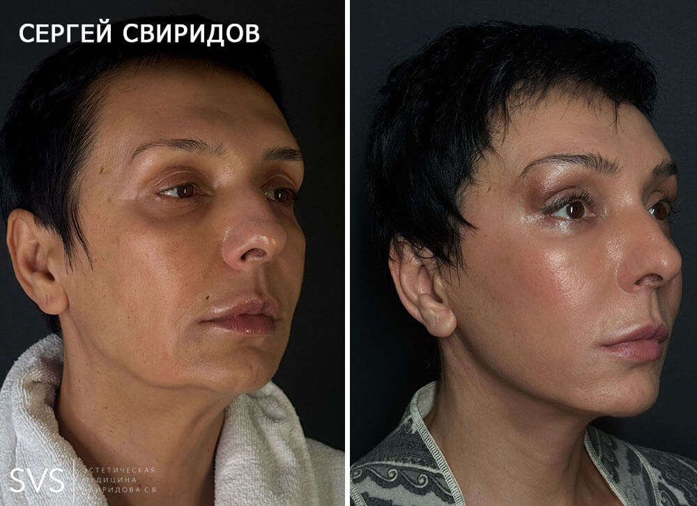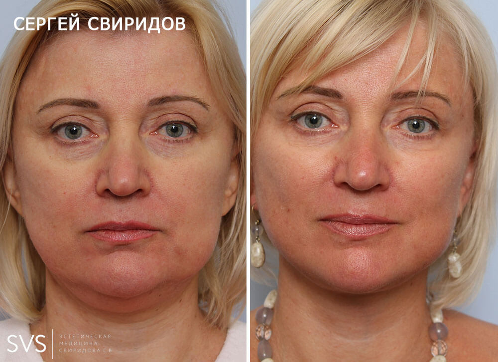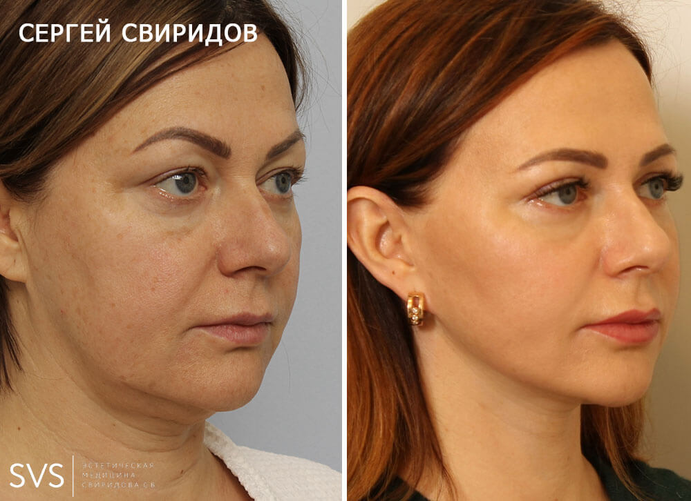 С возрастом мягкие ткани лица постепенно смещаются вниз, меняется овал, появляются «брыли», углубляются носогубные складки, снижается четкость контуров.