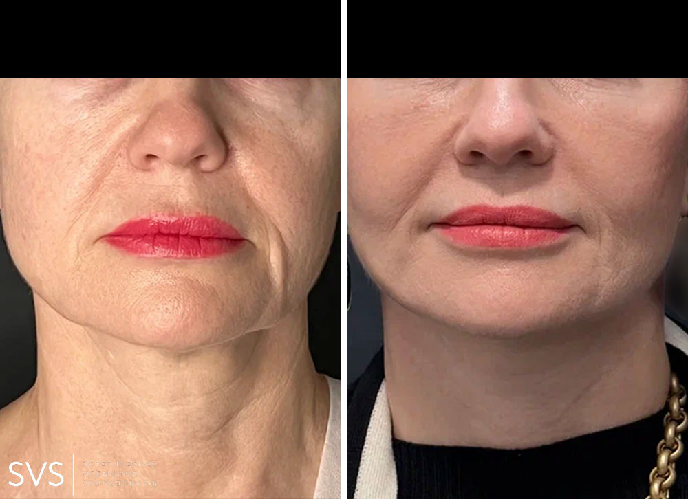 Методика работает с глубоким SMAS-слоем, который отвечает за положение тканей. Благодаря этому устраняется птоз нижней трети лица, уменьшается выраженность брылей, а контур челюсти становится более чётким и аккуратным. Лицо выглядит моложе, при этом сохраняются естественные пропорции и мимика.